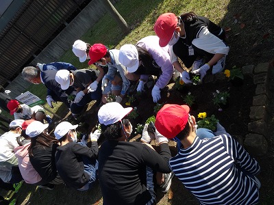今回は、前回よりも手際よく、協力して花の苗を植えていました。