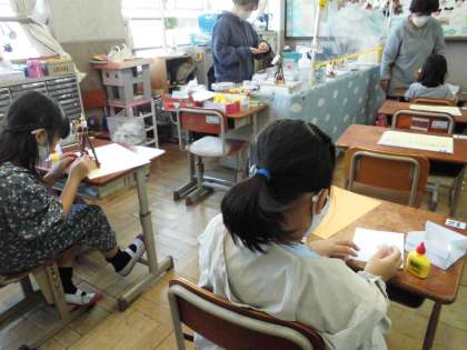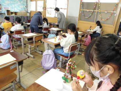 「早くお家で飾りたいなあ。」と、かわいく出来上がった作品をうれしそうに眺めていました。