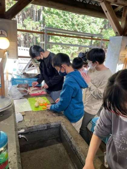 カレー作り担当は、野菜を洗って、大きさを揃えて切っていきます。