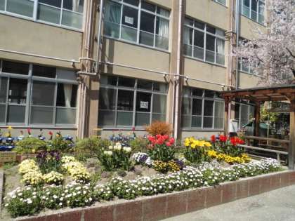 花いっぱいの学校で、子どもたちが元気に登校して来るのを楽しみに