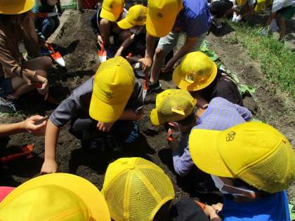畑にいって、草抜きをしたり、畝を作ってそこに種をまいたりしました。