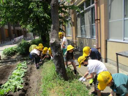 理科の学習で「たねまき」をしています。