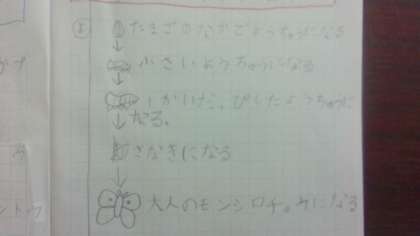今日は、モンシロチョウがたまごから、どのように育っていくかを予想しました。