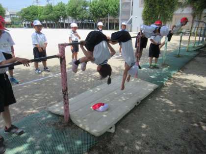 1年 体育「てつぼうあそび」