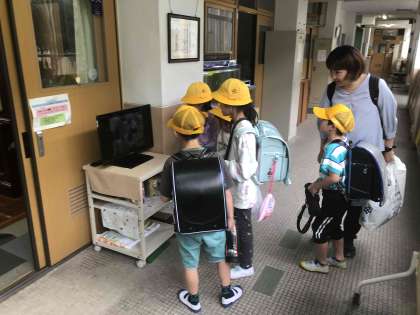 ICT支援員さんの協力を得て校長室前に