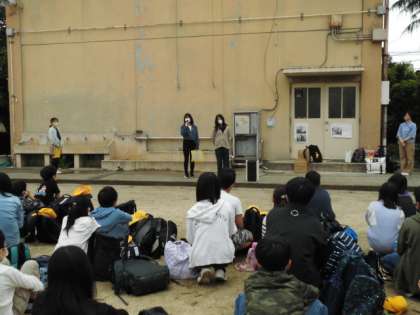出発式では、代表の子どもの出発の言葉や校長先生のお話を聞いて、修学旅行への気持ちを高めていました。