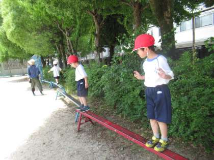雲梯やタイヤとび、平均台などをしました。