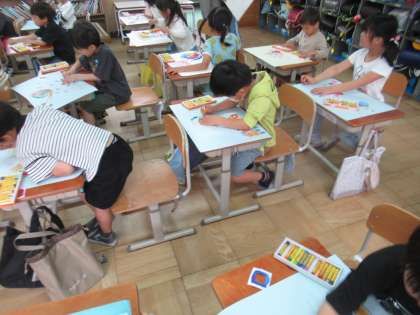 いくつもいくつもあじさいを作り、塗り重ねている顔は真剣そのものです。