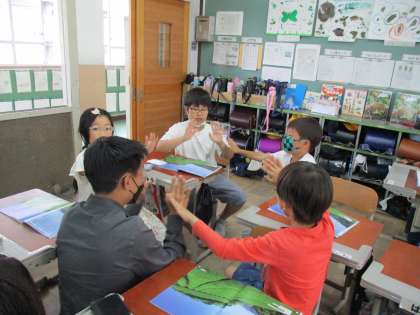 茶摘みの手遊びを、大学生や先生方と一緒にしました!