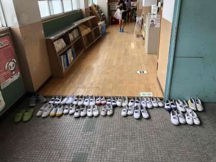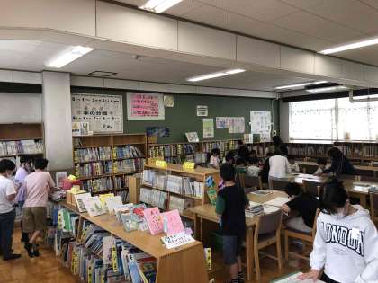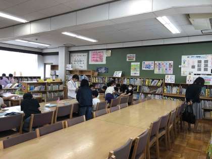 祥豊小学校の図書館の様子を見に来て