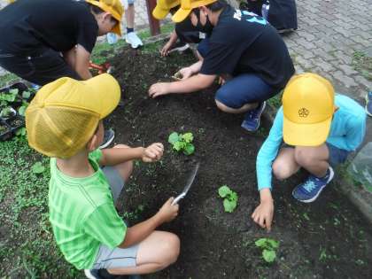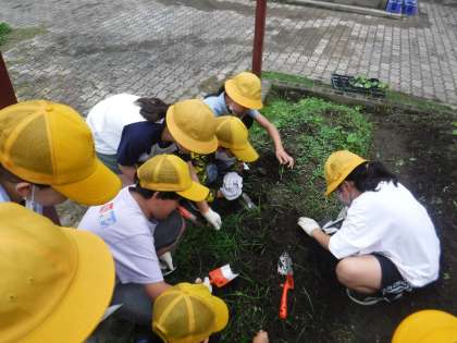 今日はツルレイシを畑に植え変えました。みんなで雑草を抜いたり、土を整えたり、グループで協力しながら丁寧に植えていきました。きっとこれからぐんぐん成長してくれるはずです。