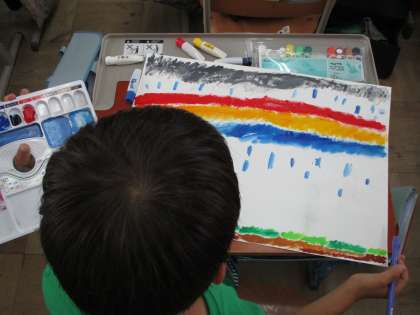今日は、2色・3色、色をまぜて、6月にあう色をつくることを頑張っていました。