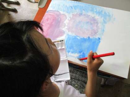 図画工作の学習で「わたしたちの6月の絵」をかいています。