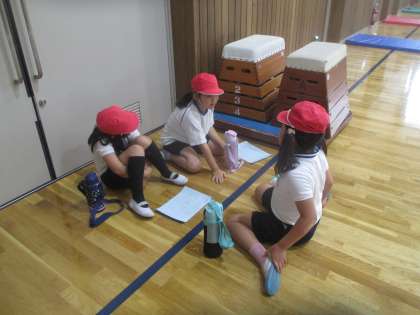 今日一緒に測定した種目は、反復横跳び・長座体前屈・上体起こし・立ち幅跳びの4種目でした。たくさんの種目を測定し、疲れた様子でした。