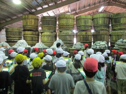 子どもたちは、しばづけを漬ける石や樽の大きさにびっくりしていました。