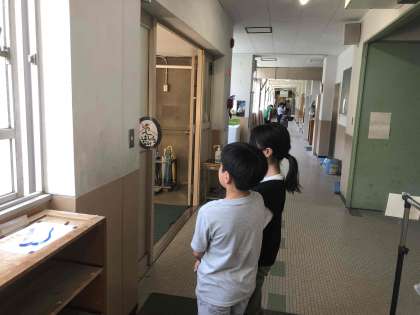 保健委員会からです。廊下や階段に標識(らしきもの)を