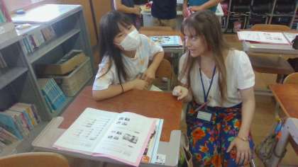 今週の外国語の学習では見たいスポーツを伝え合いました。ALTの先生も一緒に活動し、積極的に交流する姿が見られました。