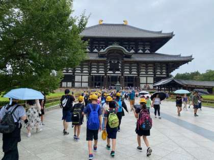 奈良公園から東大寺にかけては、たくさんの観光客と鹿に迎えられ驚いていました。