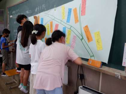 今日の道徳では,ふれあいコーナーの掲示を作りました。