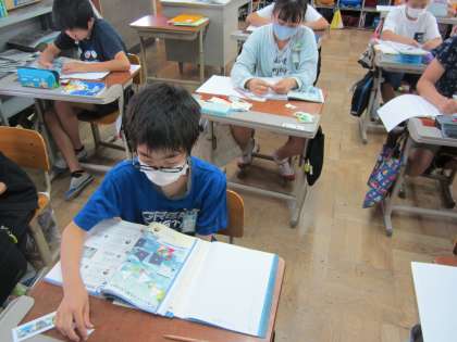 算数では、合同な図形の学習が始まりました。合同な図形の、対応する辺、頂点、角について調べました。来週からは、作図をします。三角定規や分度器、コンパスを使う予定です。みんなで楽しみながら、作図方法を学んでいきたいと思います。