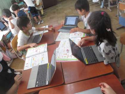 そして、見つけた音を同じ班の友だちに紹介しました。次回は、見つけた音を組み合わせて、音楽を作っていきます。どんな音楽が出来上がるか、楽しみです!!