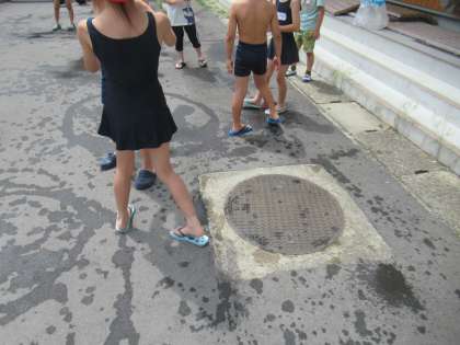 地面に絵を描いてみたり、字を書いてみたり、足元を濡らしてみたり、思い思いに活動に取り組んでいました。