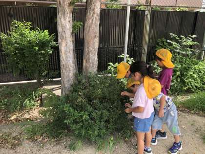 木の実を見つける子