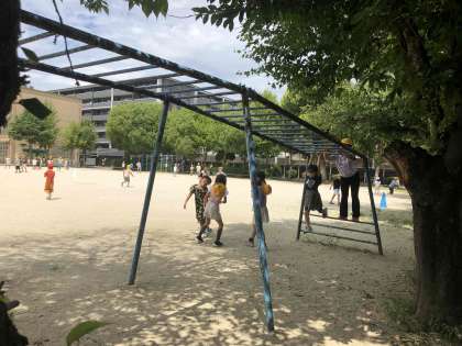 うんていで遊ぶ子