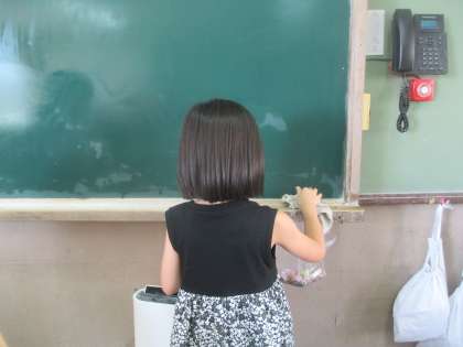 今日は、1学期最後の日でした。終業式が終わったあと、教室や下駄箱、廊下の大掃除をしました。普段は掃除しない場所も丁寧に掃除をすると、たくさんのほこりが出てきました。
