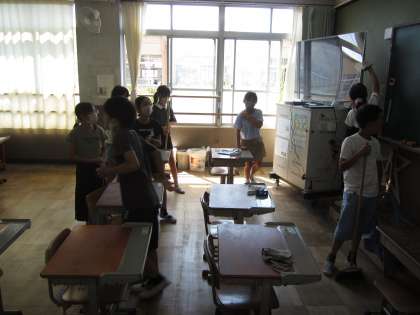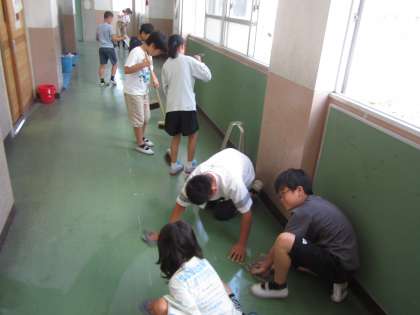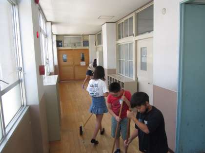 机や椅子の埃をとったり、教室の棚や台をどかしたり、教室や廊下など、普段自分たちが使う場所を隅々まできれいにしようと、奮闘していました。汗をかきながらも、一生懸命掃除する姿が、とても素敵でした。スッキリした教室を見て、達成感に満ちていました。2学期も気持ちよく迎えられそうです♪