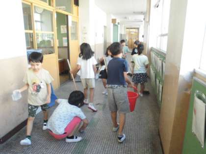 「廊下をピカピカにしよう!」「隅っこのゴミも集めたよ!」