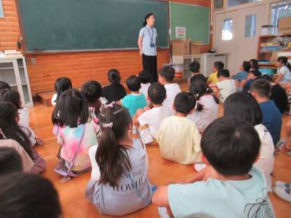 始業式の後、多目的室に集まって学年集会をしました。