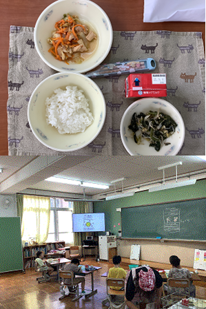 2学期最初の給食ということで子どもたちも久しぶりの給食を朝から楽しみにしていました。中間休みには給食室におぼんを取りに行ったりみんなで協力して配膳したりと、準備もばっちりです。