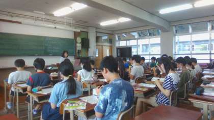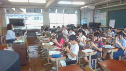 リコーダーの学習の中で和音のひびきを感じ取りました。タンギングで「トゥー」と吹くだけではなく、優しく滑らかに「ロー」というイメージで吹くことを学びました。優しく吹くことで和音のひびきが柔らかくなり、心地よい演奏となりました。