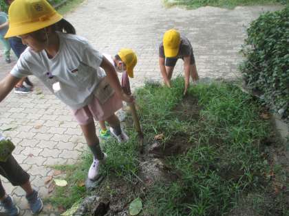 畑の草むしりをして、肥料をまきました。来週月曜には、かぶの種をまきます。さて、大きなかぶは育つのでしょうか?!お楽しみに!!