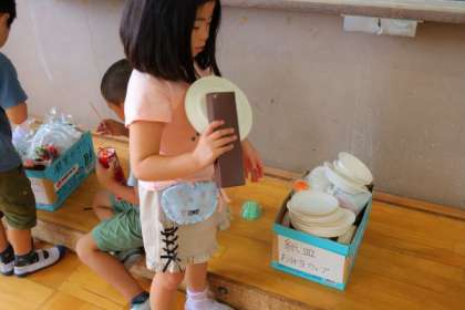 生活科で「あそんで ためして くふうして」の学習をしています。お家で集めていただいた空き容器やトイレットペーパーの芯などをじっくり見てどんなことができるのか、どんな動くおもちゃが作れるのか考えています。子どもたちの発想はとても面白いものばかりです!どんなものができるのか楽しみですね!