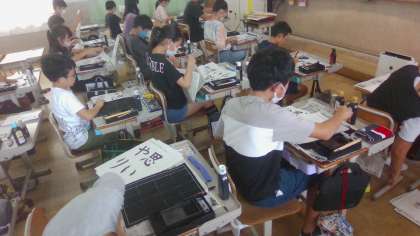 2学期最初の習字でした。一人一人が集中して文字の大きさや配列を意識して書くことができました。良い静けさ、緊張感の中での学習でした。