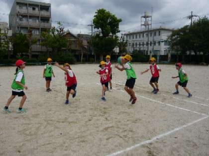 パスの仕方やゴールの仕方を工夫しながら、得点できるよう頑張っていました。