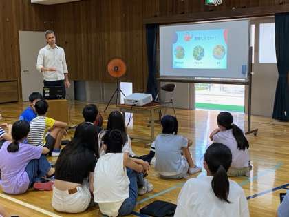 子どもたちの「外国の人と交流したい」という思いから、国際交流会館の協力のもと学校に4名の講師をお招きしました。