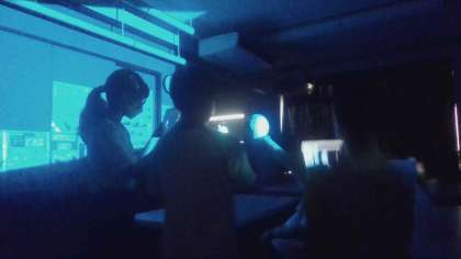 月と太陽の関係をおさえるために実験を行いました。真っ暗な理科室で疑似の太陽と月を設定し、自分たちは地球の目線でカメラを回して月の形の移り変わりを体験しました。体験に勝る学習はなかなかないものだと感じました。