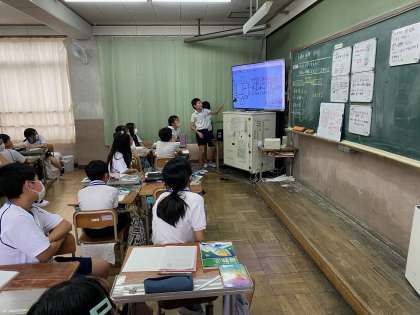 これまでに学習したことをもとに、円柱の体積の求め方をみんなで考えました。繰り返し説明を聞くことで理解を深めることができました。