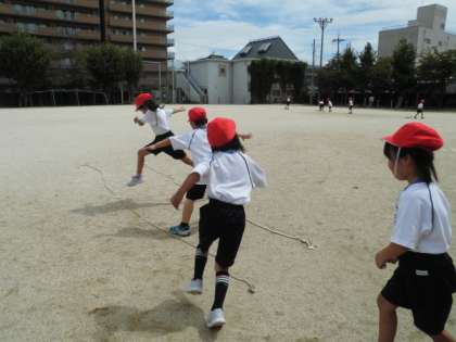 体育では、とび遊びをしています。