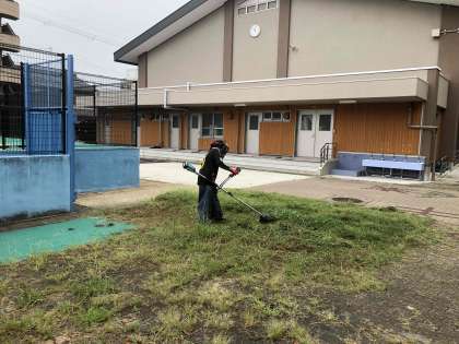 学校園の雑草を少しずつ刈っています。