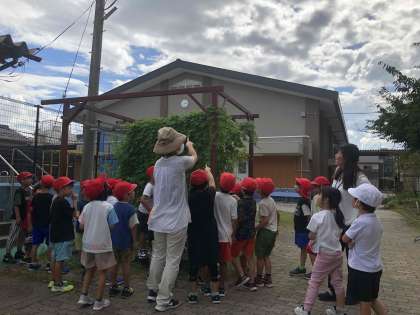 4年生の畑にアゲハチョウが止まっています。