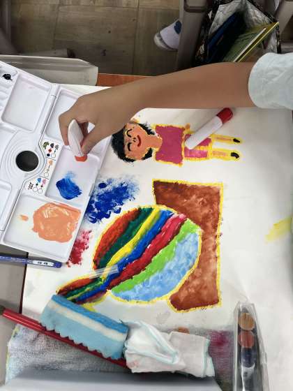 図画工作で「お話を聞いて絵をかこう」という学習をしています。