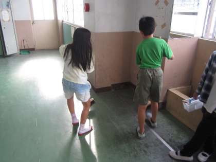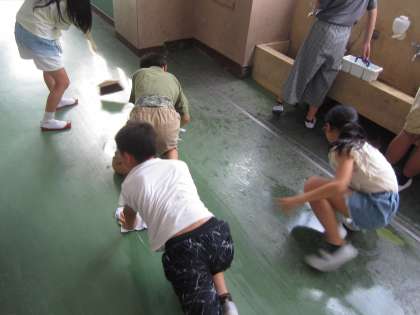 図画工作では、「言葉から思いを広げて」の学習をしています。絵の具を使うので、水道が汚れているのを見て、仲間同士で声をかけ合い、ほうきや雑巾できれいにそうじしてくれていました。自ら積極的に、こういった素敵な行動ができる子どもたちが、本当に素晴らしいです。