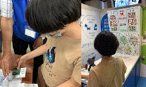 生き方探究館にてモノづくりの殿堂・工房学習がありました。殿堂学習ではたくさんあるブースの中から自分の興味のある会社のブースに行き、機械を動かしたり資料を見たりして学習を進めていました。