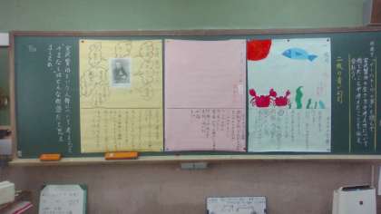 宮沢賢治の作品、「やまなし」を読むことを通じて、自分の考えを書くことを学習します。はじめは何となく「怖い、明るい、蟹のお話」といったイメージでしたが、学習を進めるにつれて「残酷な世界だが喜びもある」というように考える子どももでてきました。さらに宮沢賢治の生き方、考え方に触れたあとは「宮沢賢治の人生や思いが反映されている」というような見方も出てきました。