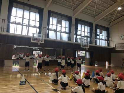 体育館でそれぞれのチームの