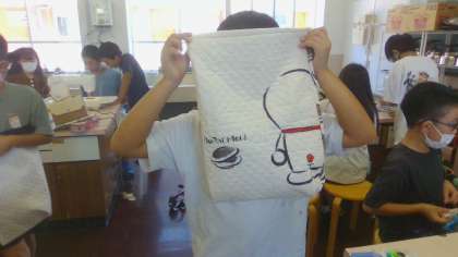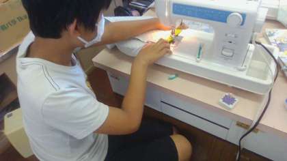 制作も徐々に進んできました。出し入れ口をぬい終わり、いよいよゴールが見えてきました。